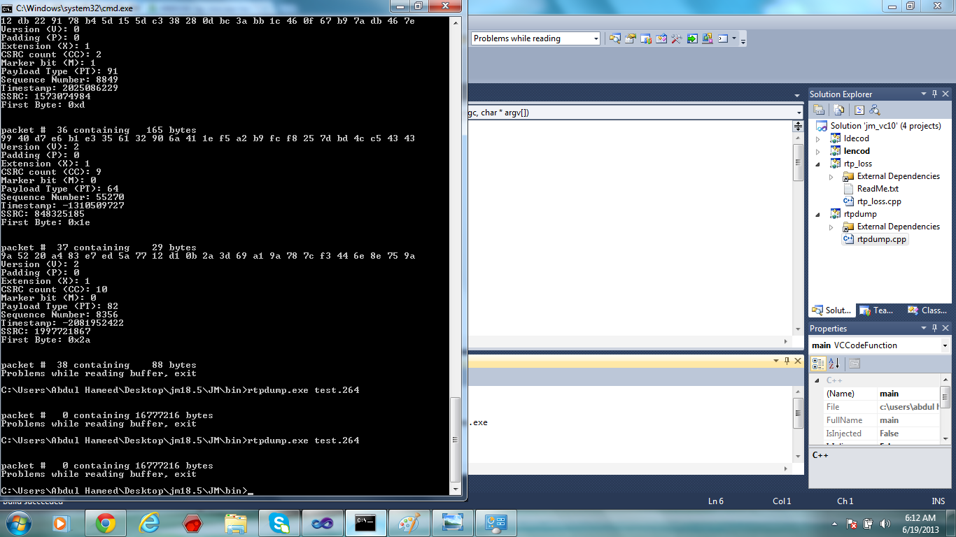 | Description | I have problems using rtpdump.exe. By using default configurations a test.264 file is generated with encoder. When rtpdump.exe is used to dump the file an error is created everytime I run the code. Exact version of Visual studio and error are attached. | ||||